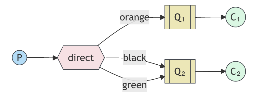 - direct:定向路由类型,把消息交给符合指定 routing key 的队列;