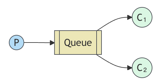 这中模式叫做"工作队列模式",从图上看就可以发现它是一对多模型,一个生产者,多个消费者,生产者产生的消息是由多个消费者共同消费的,也就是所消息的总量是不会变的,适合集群环境中做异步处理。比如一个订单服务,下单成功之后,订单消息就会发送到 RabbitMQ ,然后订单服务就会从 RabbitMQ 中获取订单详情并进行下一步的处理(在多个订单服务之间进行分配)。