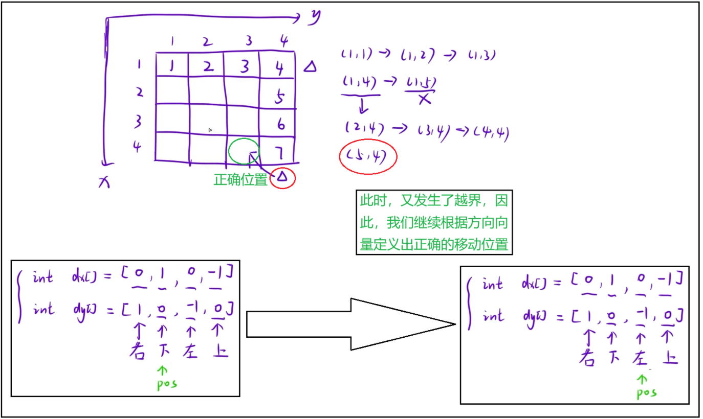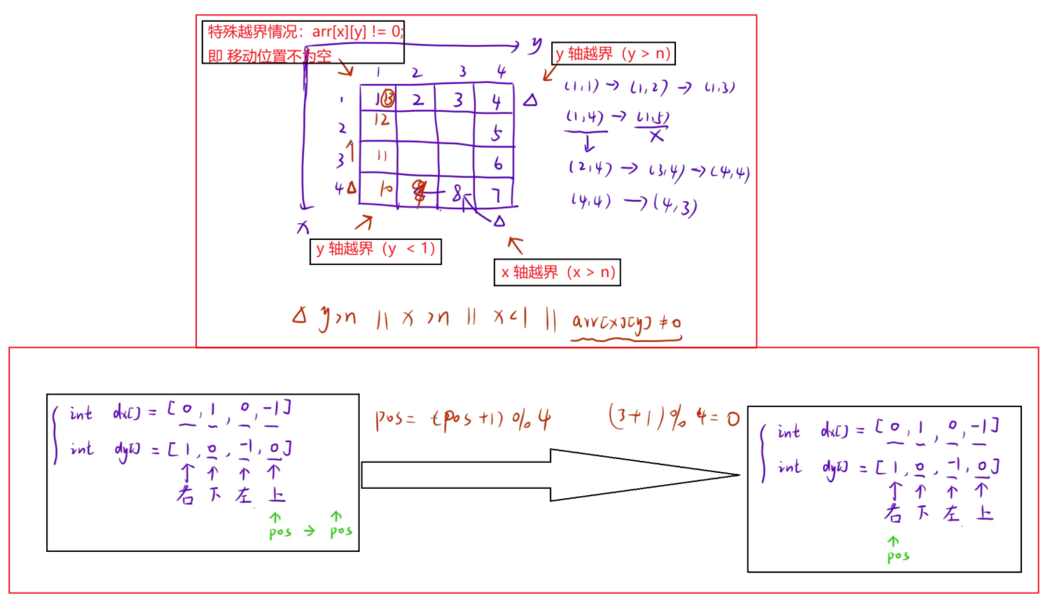 方向向量常常适用于解决矩阵中填数的场景,然后根据规则结合方向向量填数
