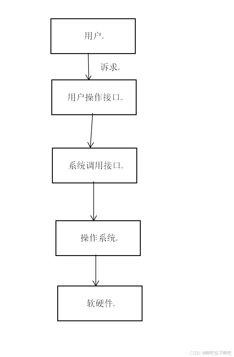 操作系统的管理方式就类似于中间人传话,我们用户先把自己想要干的事告诉给用户操作接口 ,然后用户操作接口 再把我们的诉求告诉给系统调用接口 ,系统调用接口 再把诉求告知操作系统 ,最后操作系统去执行我们的合法诉求(为什么说是合法,这是因为不合法的诉求根本传不到操作系统)。
