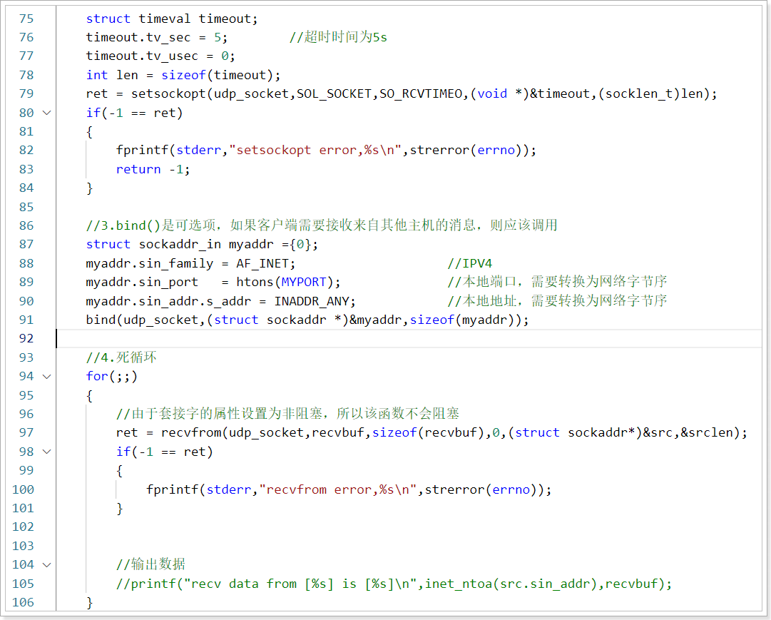 注意:如果服务器还未和客户端建立连接,并且服务器处于监听状态,则最多等待对端n秒。如果服务器已经和客户端建立连接,则服务器等待客户端发送数据的时间最多是n秒。