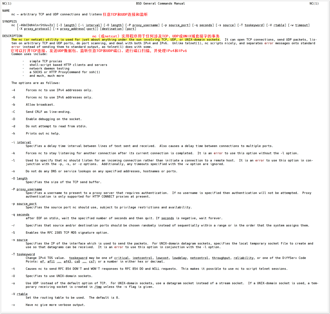 另外,Linux系统还提供一款名称叫做netcat的网络工具,利用该工具可以用于和TCP或者UDP相关的任何事务,比如打开TCP连接、发送UDP数据包、监听TCP或者UDP的端口等。