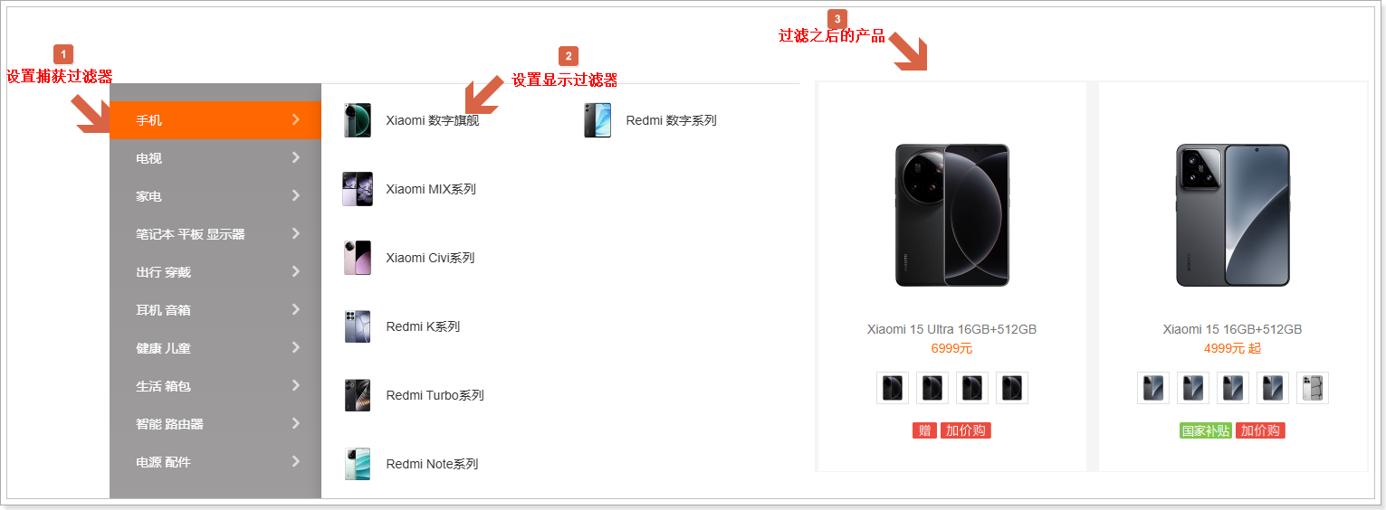 注意:筛选条件是通过过滤表达式实现的,过滤表达式由过滤项 + 过滤关系 + 过滤值组成。