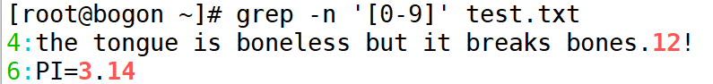 查找包含数字的行可以通过"grep -n'[0-9]'test.txt"命令来实现。