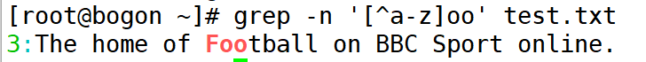 若不希望"oo"前面存在小写字母,可以使用"grep -n'[^a-z]oo'test.txt"命令实现,其中 a-z"表示小写字母,大写字母则通过"A-Z"表示。