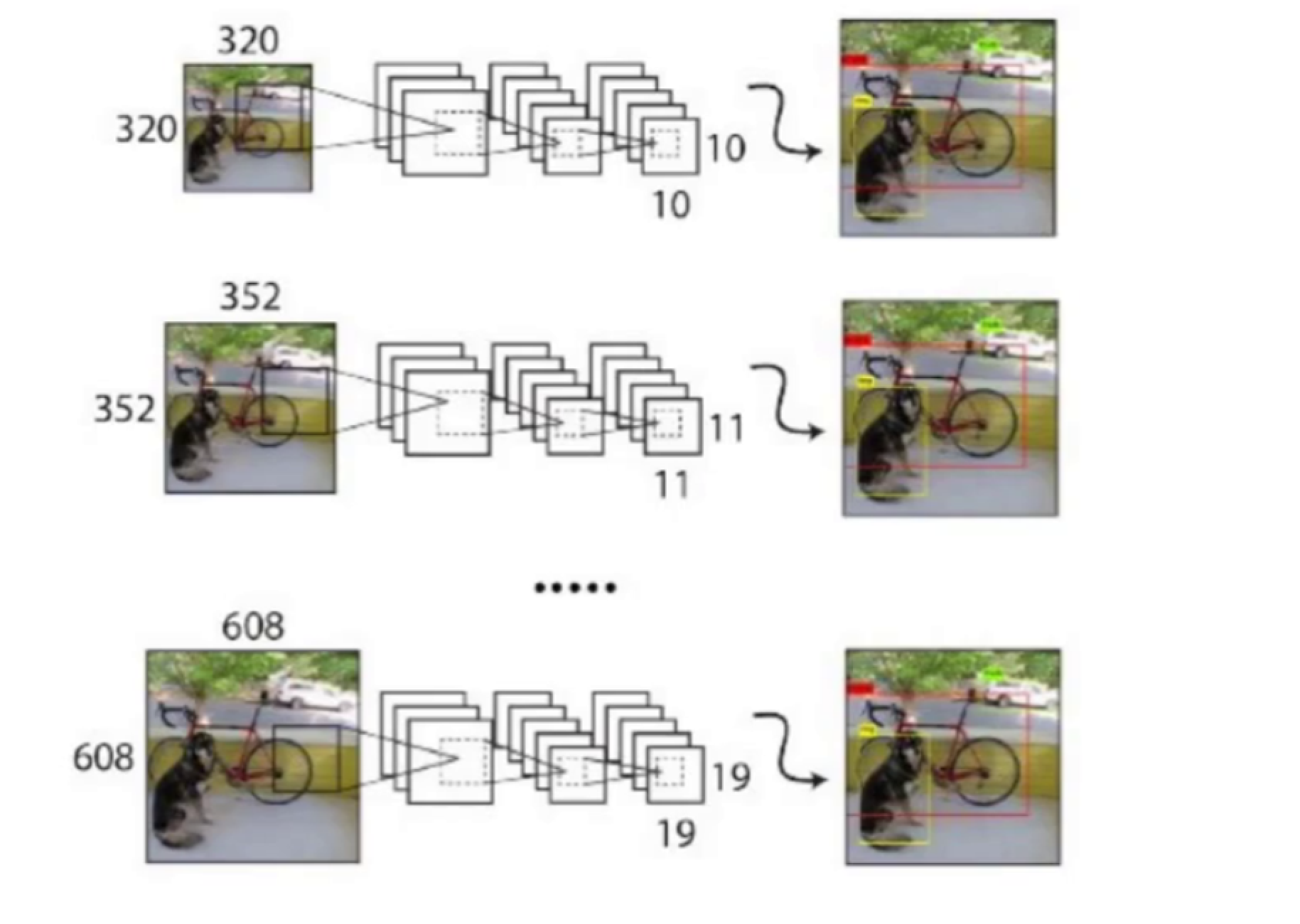 YOLO v2移除了全连接层,使网络可以接受任意尺寸的输入: