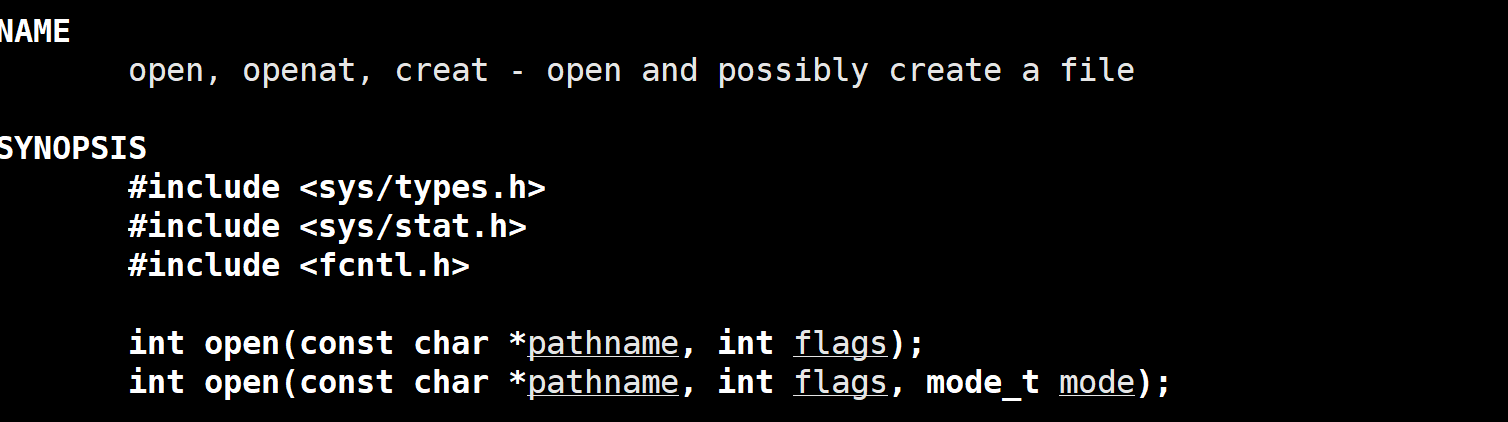 pathname:- 文件路径和文件名。用于指定要打开或创建的文件。