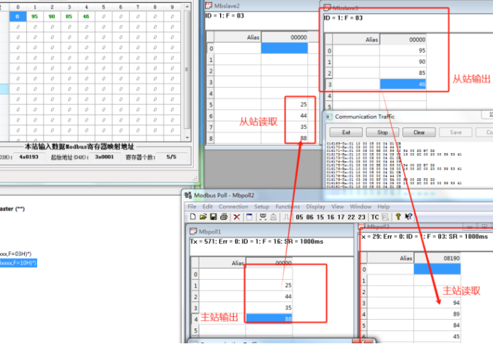 最后用modbus poll测试软件来读取从站发送的数据和对从站发送控制命令