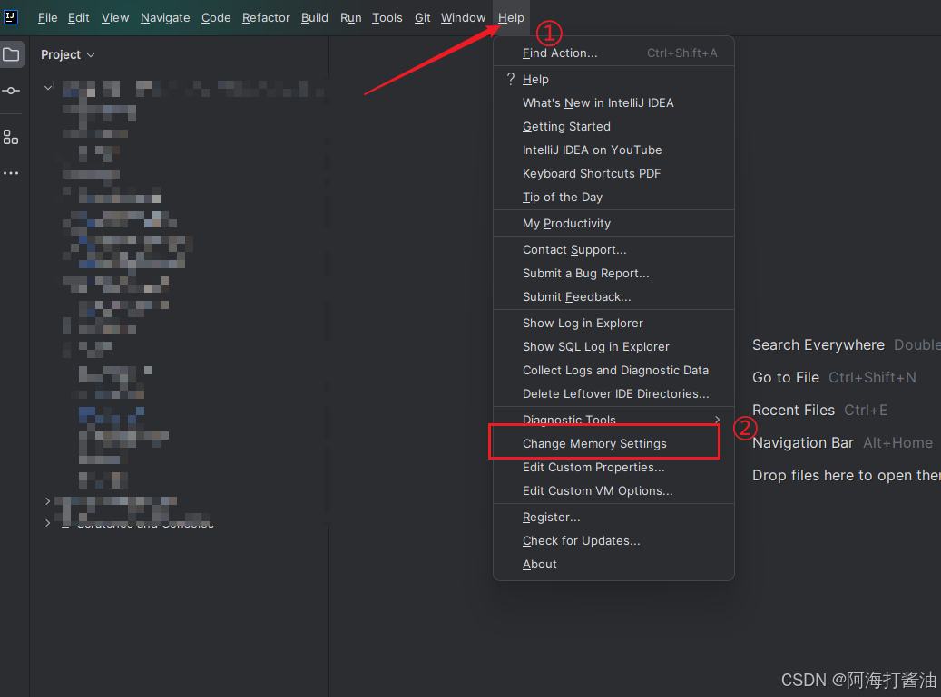 (2)打开idea,在顶部找到help->Change Memoryy Settings,修改最大值