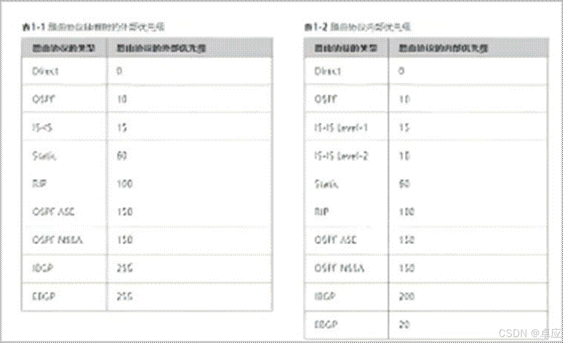 HUAWEl\] ip as-path-filter 2 permit 200 300 \[HUAWEl\] route-policy test permit node 10 \[HUAWEl\] route-policy if-match as-path-filter 2 1. 定义一个名为tes的Route-Policy,该节点序列号为10 2. 设置序号为2的AS路径过滤器,允许路由信息中包含AS200和AS300 3. 该Route-Policy的10号节点引用AS路径过滤器2,并定义了一个if-match子句 4. 该Route-Policy只能在OSPF进程中进行调用 答案: D 解析:该route-policy只能在BGP起到过滤作用 路由基础 1. 在VRP平台下,以下关于各个协议的默认优先级的描述,正确的是哪一项? OSPF路由的优先级是15 ISIS路由的优先级是10 静态路由的优先级是60 BGP路由的优先级是20 答案:C 解析: BGP核心知识 1. 以下关于BGP的UPDATE消息所包含的内容,错误的是哪一项? 1. UPDATE包含本端AS自制系统号 2. UPDATE包含路径属性 3. UPDATE包含撤销路由前缀信息 4. UPDATE包含可达路由前缀信息 答案:A 解析:主要包含以下信息\&Withdrawn routes: 不可达路由的列表。 (撤销路由) \&Path attributes: 与NLRI相关的所有路径居性列表,每个路径属性由-个TLV (Type-Length-Value) 三元组构成。 \&NLRI: 可达路由的前缀和前缓长度二元组。 不包含AS内容 OSPF核心知识 1. 以下关于OSPF多进程描述,错误的是哪一项? 1. 在同一台路由器上可以运行多个不同的OSPF进程,它们之间互不影响,彼此独立 2. 路由器的一个接口只能属于一个OSPF进程 3. 不同OSPF进程之间的路由交互相当于不同路由协议之间的路由交互 4. 不同OSPF路由器建立邻居,进程号必须相同 答案:D 解析:不同进程号之间也可建立邻居。 OSPF核心知识 1. 以下关于OSPF缺省路由的描述,错误的是哪一项? 1. 自治系统边界路由器(ASBR)发布5类缺省LSA,或者7类缺省LSA,用来指导自治系统(AS)内路由器访问自治系统外部 2. OSPF缺省路由可以由区域边界路由器(ABR)发布3类缺省LSA,用来指导区域内路由器进行区域之间报文的转发 3. 当路由器无精确匹配的路由时,就可以通过缺省路由进行报文转发 4. 由于OSPF路由的分级管理,5类和7类缺省路由的优先级高于3类缺省路由 答案:D 解析:由于OSPF路由的分级管理,Type3缺省路由的优先级高于Type5和Type7路由。 BGP核心知识 1. BGP常用的路由策略工具中,以下哪一项能够用来匹配特定AS path属性? 1. filter-policy 2. ip-prefix 3. ip as-path-filer 4. community-filter 答案:C 解析:as-path-filer用来匹配AS path的 网络服务与管理 1. DHCP协议运行过程中,客户端从申请到获得IP地址时的流程是: ①主机发送DHCP Request请求IP地址 ②Server发送DHCP Offer报文响应 ③主机发送DHCP Discover报文寻找DHCP Server ④Server收到请求后回应ACK响应请求 1. 3-2-1-4 2. 1-2-3-4 3. 1-4-3-2 4. 3-4-1-2 答案:A 解析:运行流程如答案,记住即可 OSPF核心知识 1. 下面关于display ospf peers输出的信息描述正确的是:  1. DD交换过程中经过协商,本端成为SIave 2. Address:10.1.1.,1表示本端接口地址是10.1,1.1 3. RouterID表示本端路由器ID为10.1.1.1 4. 指定路由器(DR)为地址是10.1.1.1 答案:D 解析:信息显示,主从协商邻居是Slave,邻居地址10.1.1.1,本段的Router ID是10.1.1.2,DR是10.1.1.1 网络服务与管理 1. 某中型规模园区网络通过SNMP协议管理网络,该园区对于网络安全性很高,推荐使用SNMP哪个版本进行管理? 1. SNMPv4 2. SNMPv1 3. SNMPv2C 4. SNMPv3 答案:D 解析:SNMPv1是SNMP协议的最初版本,提供最小限度的网络管理功能,安全性不太好。 SNMPv2采用了团体名认证。在兼容SNMPv1的同时扩充了SNMPv1的功能提供了更丰富的错误代码,能够更细致地区分错误。SNMPv3主要在安全性方面进行了增强,它采用了USM (基于用户的安全模型)和VACM(基于视图的访问控制模型)技术,USM提供了认证和加密功能,VACM确定用户是否允许访问特定的MIB对象以及访问方式目前SNMP有v1、v2c、v3三种版本没有SNMPv4版本。 BGP核心知识 1. 以下关于BGP路由更新的描述,正确的是哪一项: 1. BGP工作在UDP之上,传输层协议是179 2. BGP无需周期性通告路由信息 3. BGP每次路由更新都发送完整的路由表信息 4. BGP采用组播更新 答案:B 解析:A选项: BGP是工作在应用层的并且是TCP的协议号是179.B选项: 一个BGP的路由器就拥有的路由条是很大的,如果周期性的更新,会带来极大负载。 所以"BGP无需周期性更新"C选项: BGP是增量更新的,不会全部路由表更新。D选项: BGP是基于TCP完成建立的,而TCP是点对点报文交互的,即单播。 OSPF核心知识 1. 路由器R1和R2分别使用GigabitEthernet0/0/0直连,并试图建立OSFP居,然而邻居关系并没有成功建立,排错过程如图所示。那么以下哪一个操作可以使R1和R2邻居管理正常建立?  1.  2.  3.  4.  答案:C 解析:OSPF的hello时间需要保持一致。才能正常建立邻居。所以本题选择 \[R2\] interface GigabitEthernet 0/0/0 \[R2-GigabitEthernet0/0/0\] ospf timer hello 20 网络可靠性 1. 14、以下关于VRRP的描述,错误的是哪一项? 1. VRRP是一种元余备份协议,为具有组播或广播能力的局城网(如以太网)设计,保证当局城网内主机的下一跳路由器设备出现故障时,可以及时的有另一台路由器来代替,从而保持网络通信的连续性和可靠性 2. 在使用VRRP协议时,需要在路由器上配置虚拟路由器号和虚拟IP地址,虚拟路由器的MAC地址无需配置可直接使用主用路由器的真实MAC 3. 网络上的主机与虚拟路由器通信,不需要了解这个网络上物理路由器的所有信息 4. 一个虚拟路由器由一个主路由器和若干个备份路由器组成,主路由器实现真正的转发功能,当主路由器出现故障时,一个备份路由器将成为新的主