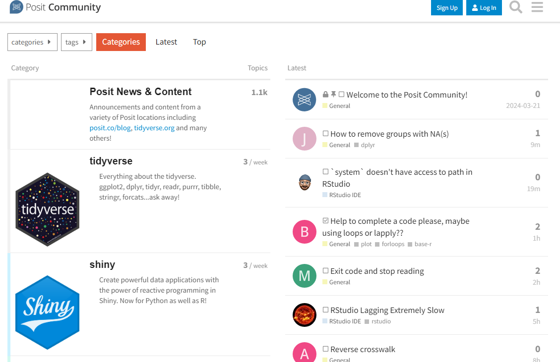 RStudio官方运营的论坛,专注于RStudio IDE和相关R包的使用技巧。用户可以在这里提问、分享经验,并参与在线研讨会和问答会6。