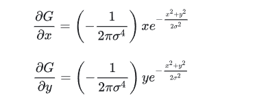 这里所谓某个尺度下图像,就是对原始图像进行该尺度的高斯模糊后得到的图像,在所有的可搜索的博文或者代码中,我们都看到了大家都是按照论文作者提供的matlab代码的方式,直接根据高斯模糊卷积核的公式,先求出其3种二级偏导数的理论计算公式,然后在根据公式取求取卷积的结果,直接得到二级偏导数,即如下过程: