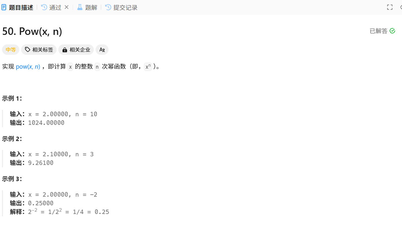 题目链接:50. Pow(x, n) - 力扣(LeetCode)