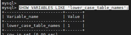 SHOW VARIABLES LIKE 'lower_case_table_names';