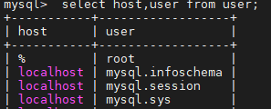 select host,user from user;