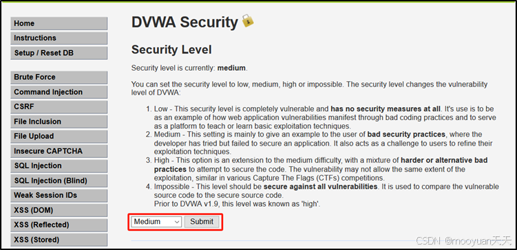DVWA(Damn Vulnerable Web Application)中的 SQL Injection 关卡是用于练习和演示 SQL 注入攻击的不同场景,不同安全等级存在不同的漏_洞和绕过方法,本小节对中等Medium级别的关卡进行渗透实战。