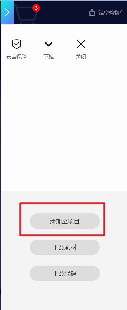 - 登录后→选择图标库, 点进去查看图标→选择合适的图标,加入购物车→点击购物车→把购物车添加至项目中 → 没有项目就建一个 →下载至本地