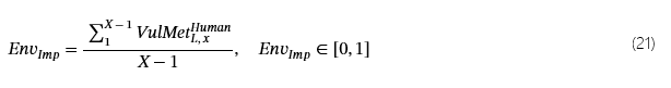 • 对于本地安全状态,资产关键性和环境影响度量的权重等于 0,因为周围环境的贡献/影响不被考虑/不相关。要获取本地安全状态 (VulMetLHum一个n),其余三个度量可以平均: