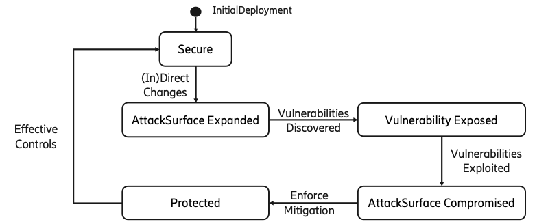 在更改后确定网络功能的入口点后,将对其进行评估,以描述是否存在任何可通过已识别的攻击面滥用的漏洞。因此,从攻击面的扩展过渡到漏洞暴露状态。一个重要的方面是评估漏洞是否可以被利用,以及漏洞在被利用的情况下会产生什么影响。如果漏洞可被利用,则更有可能通过攻击面导致系统遭到入侵,这反过来又将状态从漏洞暴露转移到受损状态。