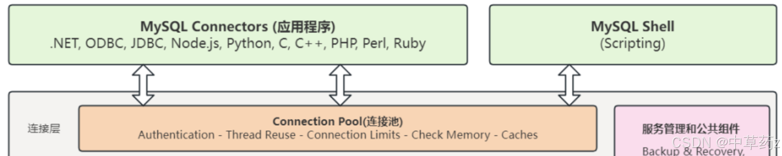服务管理和公共组件:提供了数据备份与恢复,安全组件,主从复制和集群管理,表分区等实用功能。