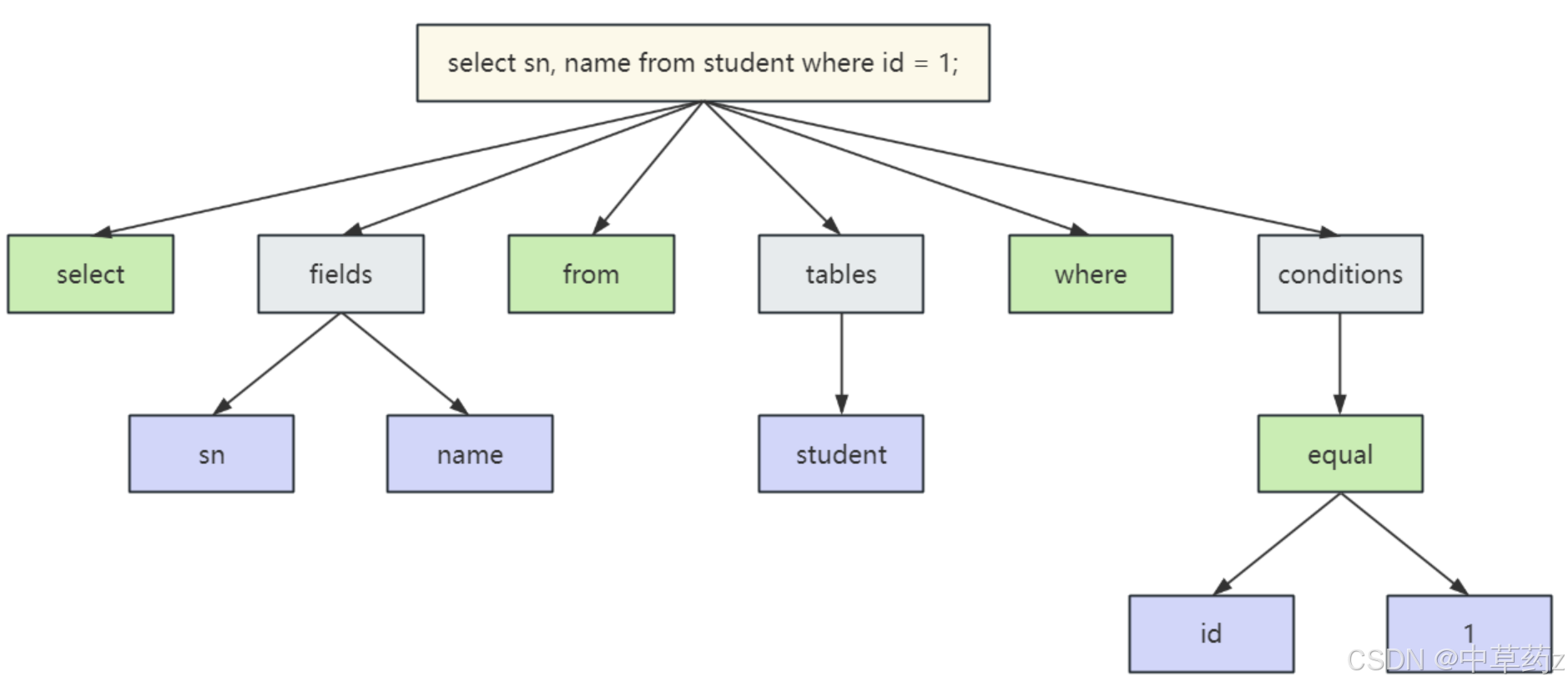 # 例如有如下SQL语句, 对应的解析树⼤致如图所⽰