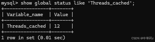 - 系统变量 thread_cache_size 决定了线程池缓存的大小。默认情况下,服务器在启动时会自动调整这个值,但也可以通过选项文件明确指定大小,值为0时禁用缓存,此时为每个新连接创建执行一个线程,并在连接断开时释放;