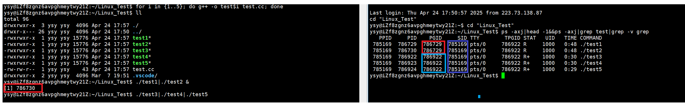**(1)进程组概念:**进程组是由一个或多个进程组成的集合,这些进程在某些方面具有关联性。在操作系统中,进程组是用于对进程进行分组管理的一种机制。每个进程组有一个唯一的进程组 ID 来标识它,通常情况下,进程组 ID 是其第一个加入该组的进程的进程 ID。