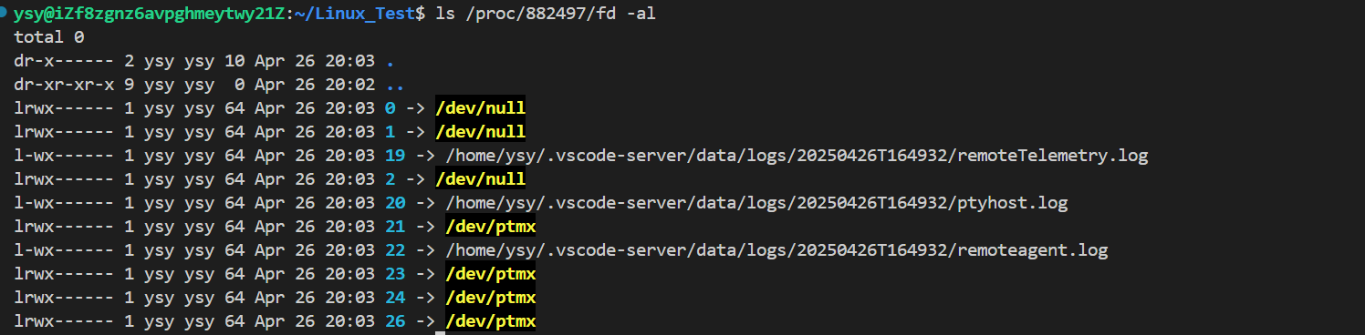 通过ls /proc/进程pid/fd -al命令,可以看见该进程的标准输入、标准输出以及标准错误成功重定向到/dev/null上。