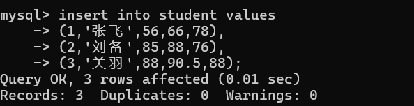 -> (1,'张飞',56,66,78),
