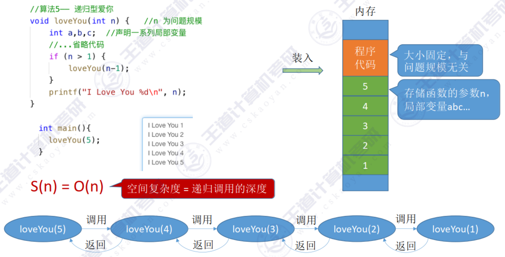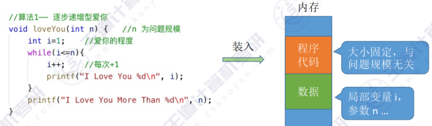 空间复杂度--空间开销(内存开销)与问题规模 n 之间的关系