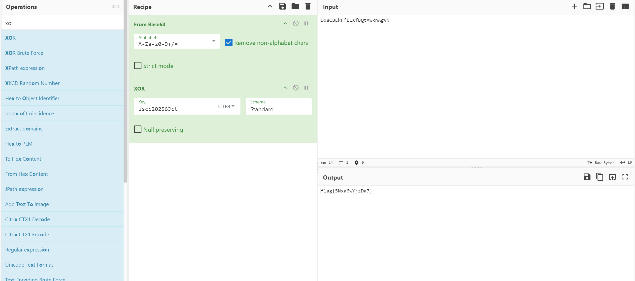 result = 'ISCC{' + ''.join(chr(int(value * 255)) for value in values) + '}'
