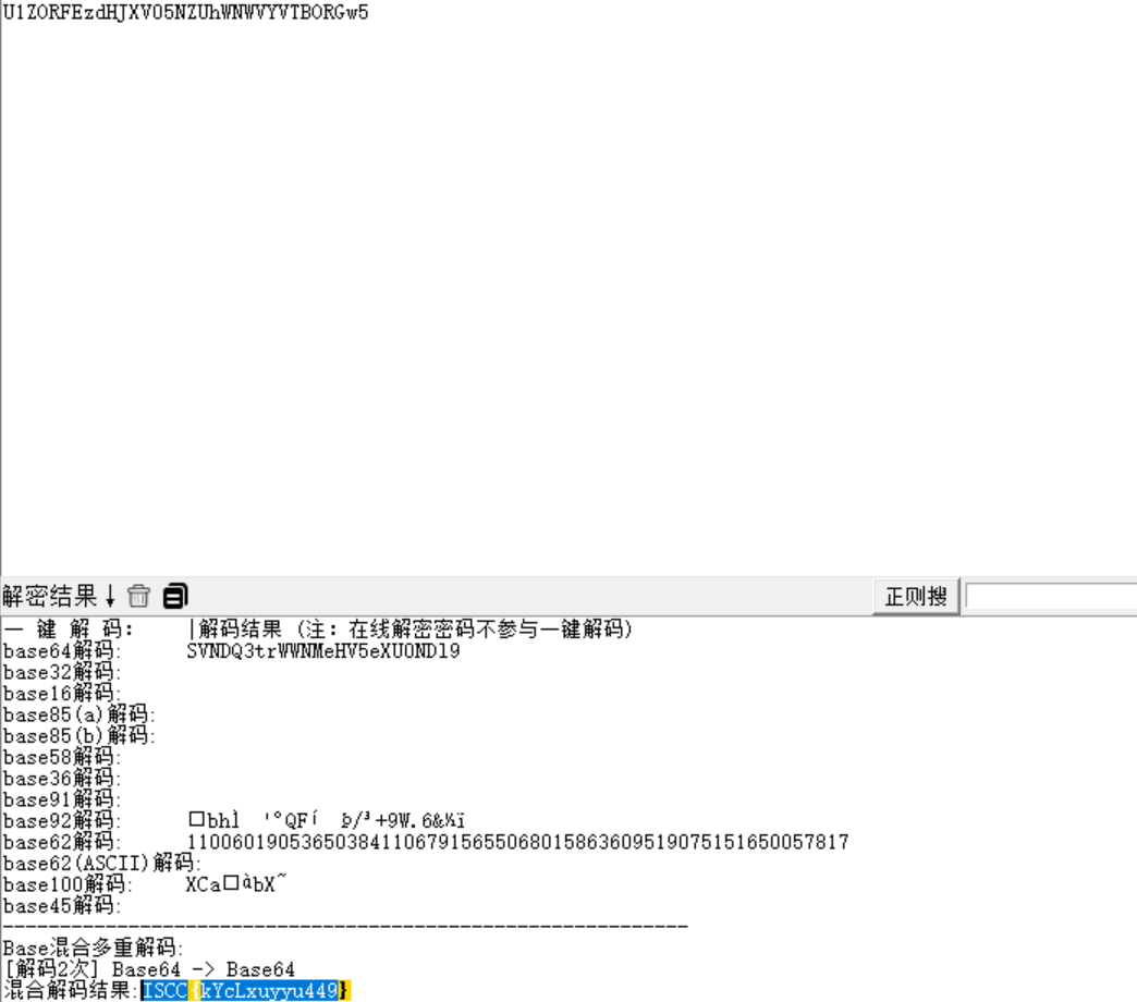 hex_str = "53564E44513374784F544A31616A5A334D6A686A66513D3D"