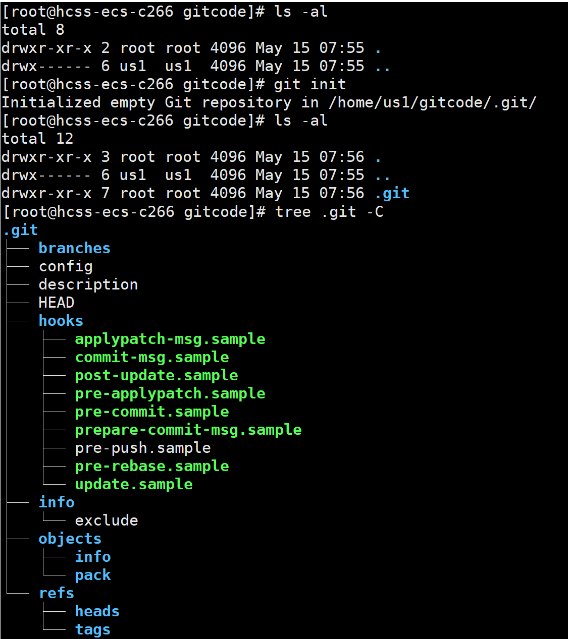 如上我们在新建目录gitcode,并用git init指令初始化得到.git目录。其中gitcode目录下称为工作区,而.git目录下就是版本库。