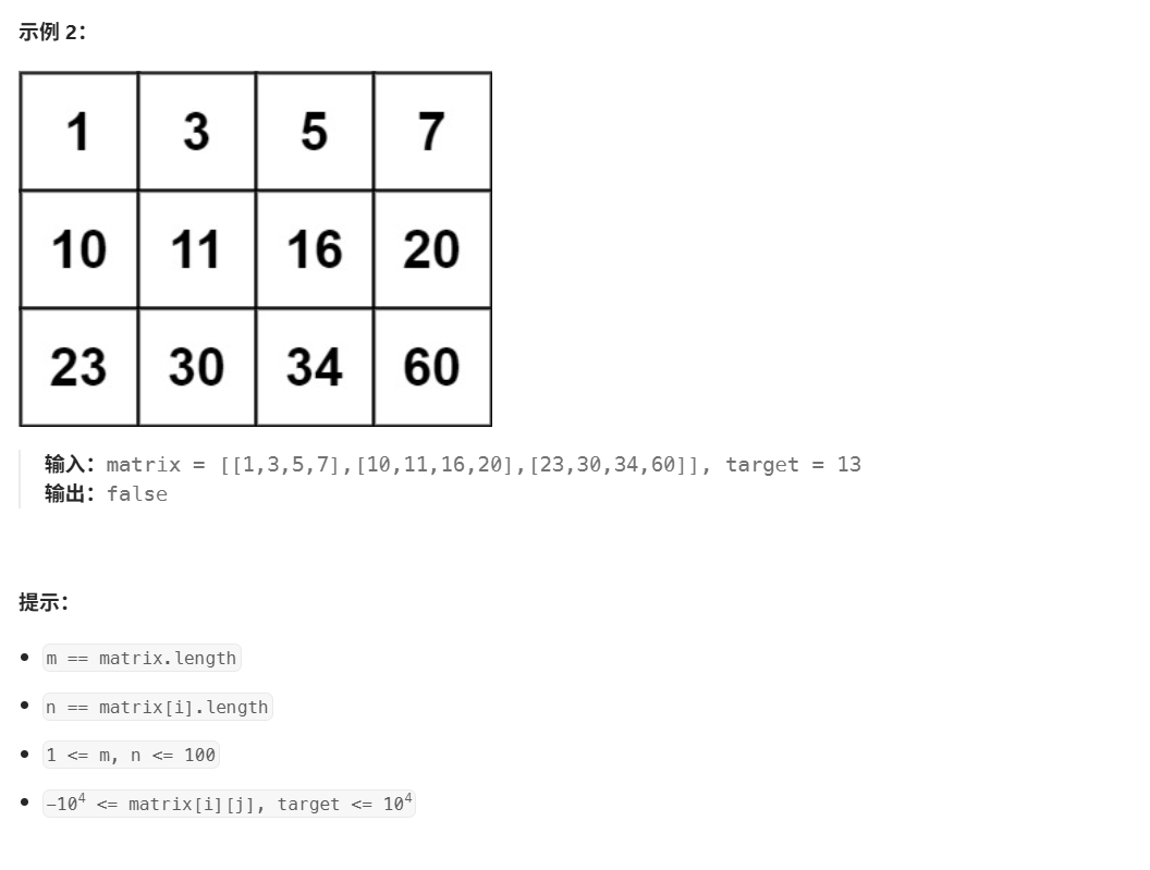 要求时间复杂度必须是log(m*n)。那么对每一行分别执行二分查找就不符合要求,这种做法的时间复杂度是m*log(n)。