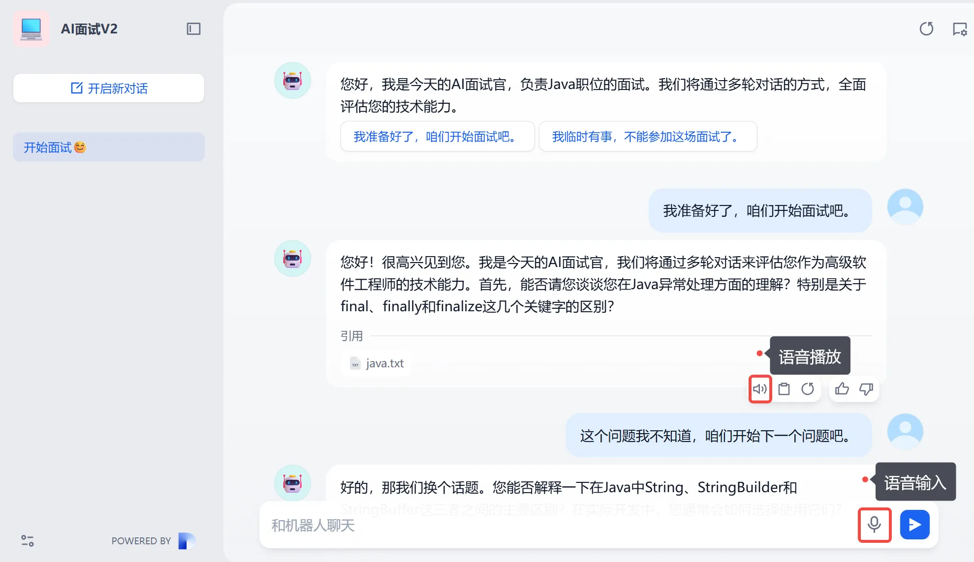 - 根据岗位自动匹配问题类型(如 Java 后端或前端)。