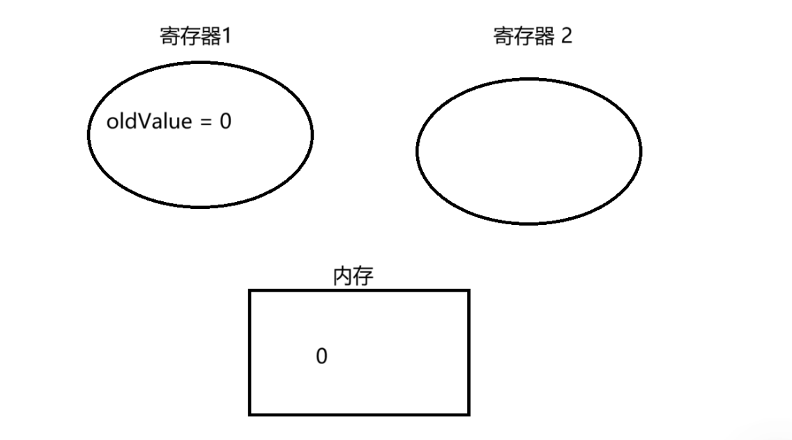 一个CAS就会涉及到一下操作:我们假设内存中的原数据为V,寄存器中的值是A,需要修改的是新值B,会有三个操作: