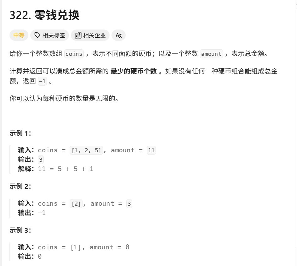 第一题对应力扣上编号为322的题目零钱兑换