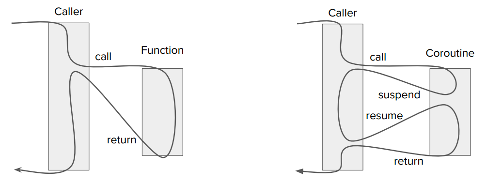 我们知道一个函数的函数体 (function body) 是顺序执行的,执行完之后将结果返回给调用者,我们没办法挂起它并稍后恢复它,只能等待它结束。而无栈协程则允许我们把函数挂起,然后在任意需要的时刻去恢复并执行函数体,相比普通函数,协程的函数体可以挂起并在任意时刻恢复执行。从这个角度来说,无栈协程是普通函数的泛化。