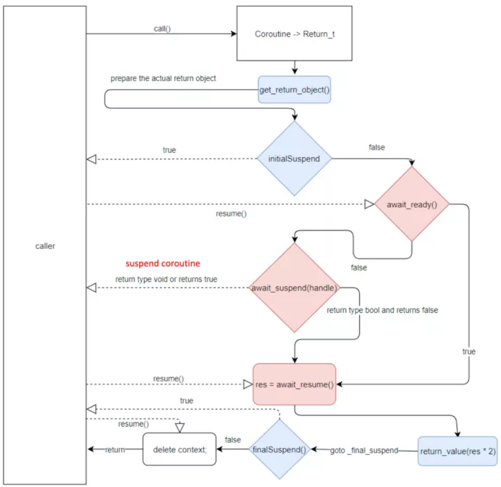 C++20 是通过 Compiler 代码生成与语法糖配合的模式来实现的相关机制,与其它语言对比之下 C++20 协程使用的直观度,便利性都会存在一些折扣。