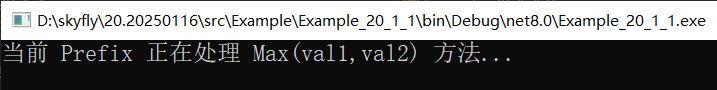 Console.WriteLine($"当前 Prefix 正在处理 {__originalMethod.Name}({parameters}) 方法...");