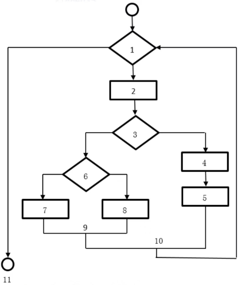图G的环形复杂度V(G)=P+1,其中,P是流图中判定结点的数目。