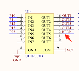可以看到它有一个Beep引脚,该引脚给无源蜂鸣器提供了脉冲信号。