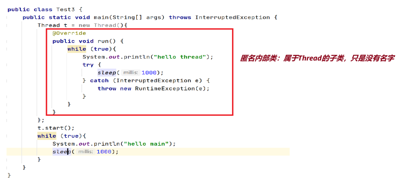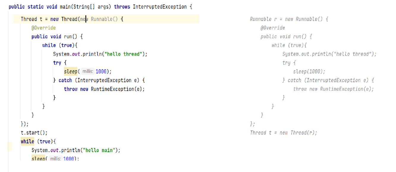 lambda表达式中直接重写run方法中的内容,不用再继承实现哪个类或者哪个接口。