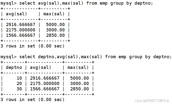 group by 指定列名:实际分组,是按不同的列名的行数据进行分组,组内的指定列名一定相同,从而进行聚合统计,聚合压缩