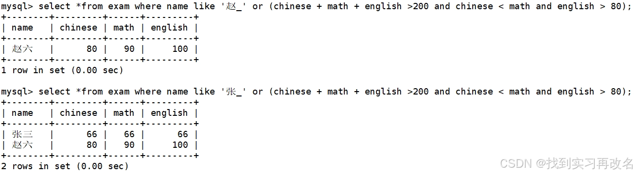 找姓找同学和找赵某同学,使用%匹配多个字符,使用_匹配单个字符