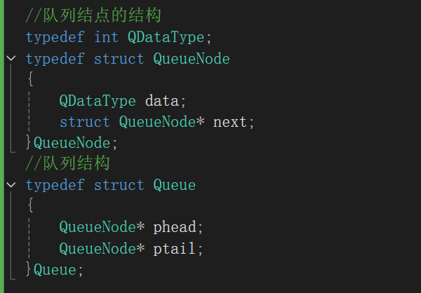 到这里就可以发现,head和ptail就是指向结点的指针,那么该"结点"就需要单独定义一次,也就是结点的结构