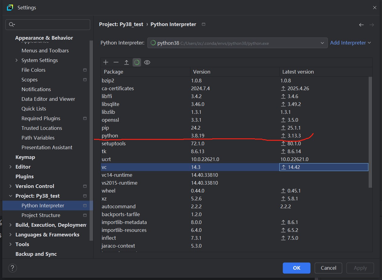 这样就可以明明白白,看到当前工程采用的Python就是3.8了。
