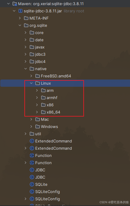 终极原因:龙芯用的是国产cpu,指令集也是自己研发的。而sqlite 的java驱动是会调用本地接口,所以需要在龙芯架构下编译一份.so文件。而maven中心库里面的sqlite驱动不包含这个龙芯的版本