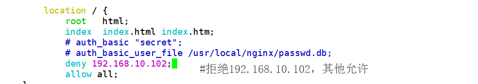 allow IP/IP 段:允许某个 |P 或 IP 段的客户端访问。规则从上往下执行,如匹配则停止,不再往下匹配。