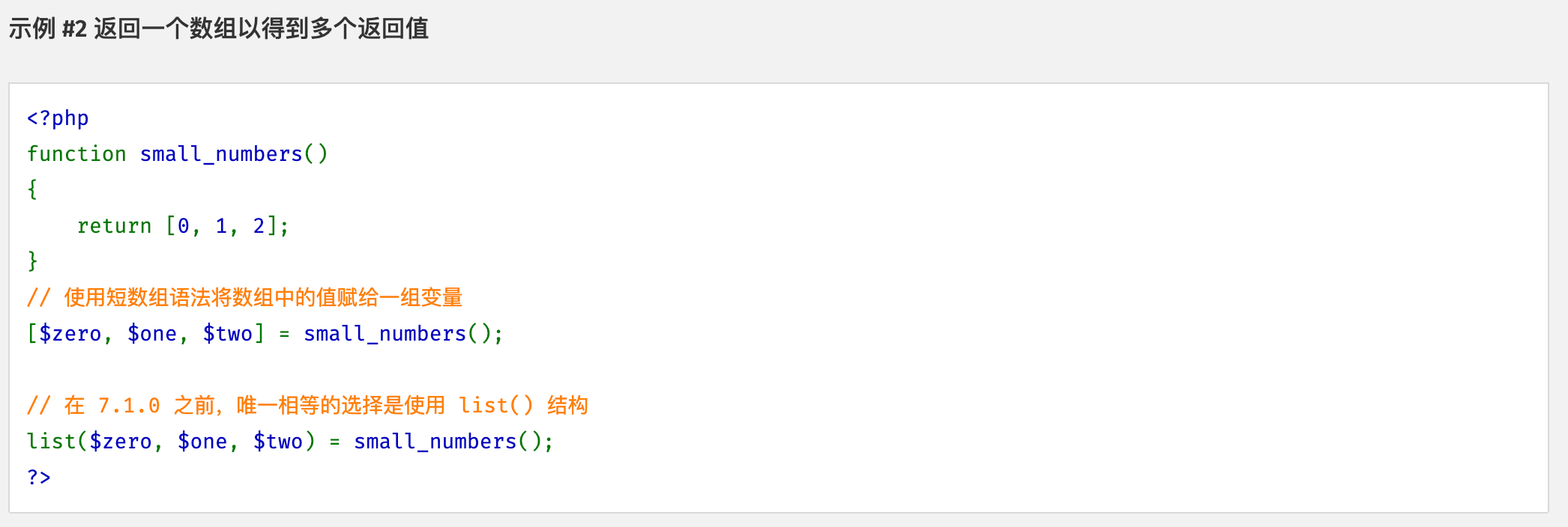 list($name, $age) = getUser(); // 或 [$name, $age] = getUser();